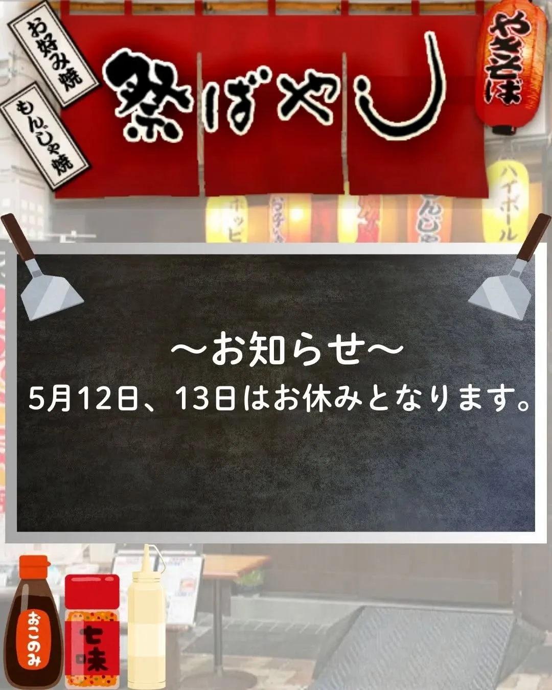 5月12日(日)、13日(月)はお休み