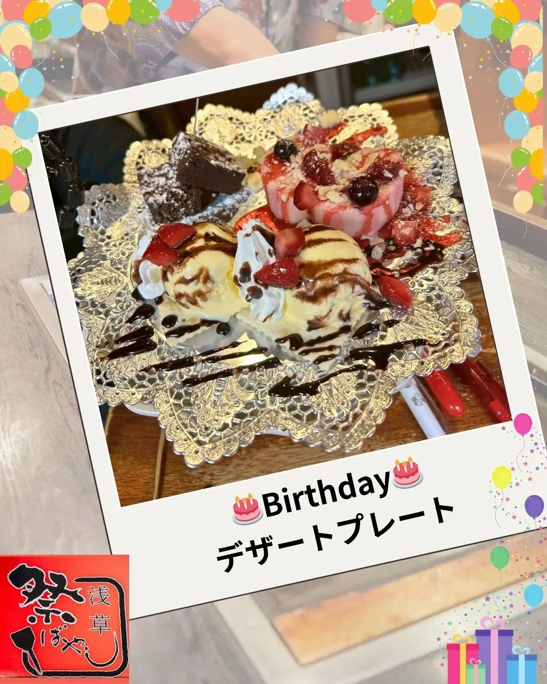 浅草「祭ばやし」では、記念日やお誕生日にピッタリの バースデーデザートプレート をご用意しています🍨🍫🍓