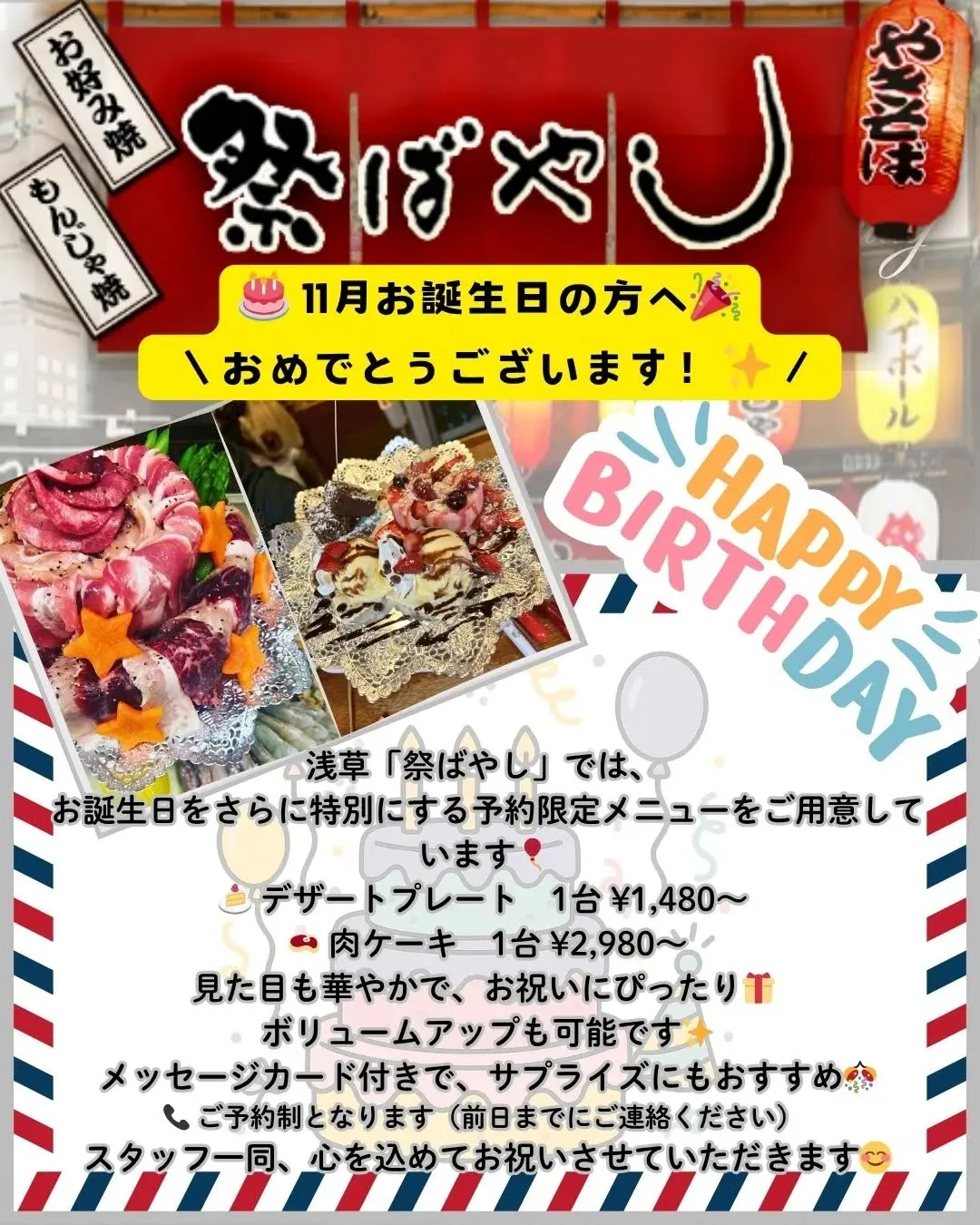 お誕生日をさらに特別にする予約限定メニューをご用意しています🎂